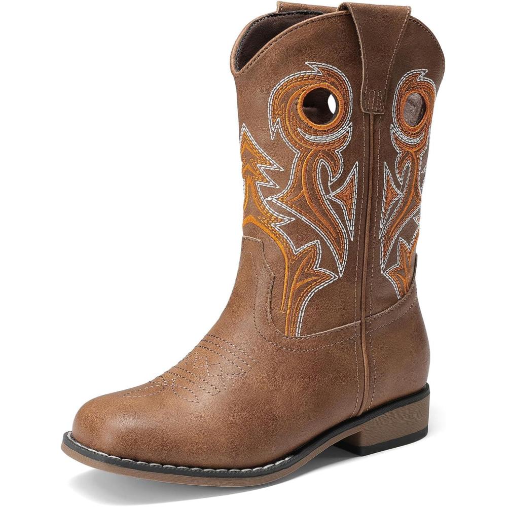 DREAM PAIRS Boys Cowboy Boots Kids Classic Western Boots Square Toe Girls Cowgirl Boots for Toddler/Little Kid/Big Kid(Tan)