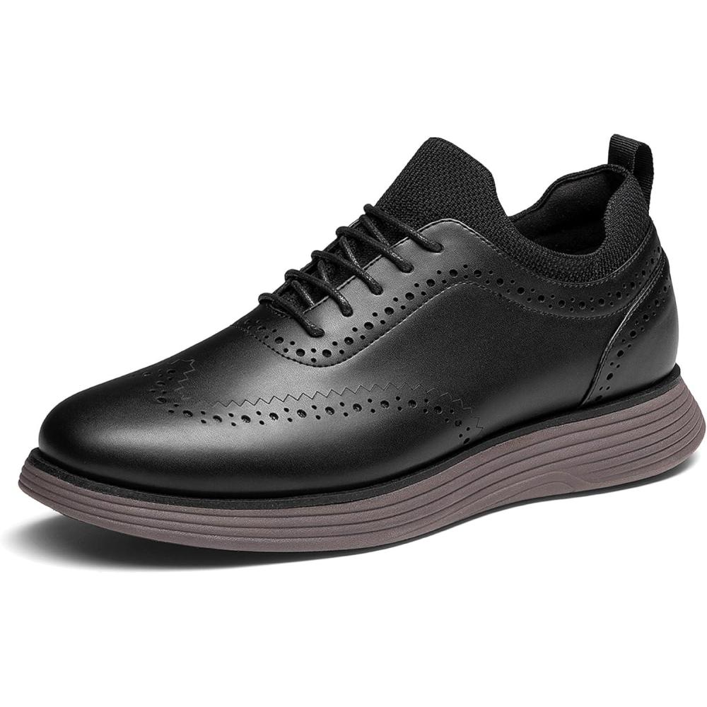 Bruno Marc Men’s MaxFlex Dress Sneakers Oxfords Casual Wingtip Brogue Shoes(Black/Coffee)