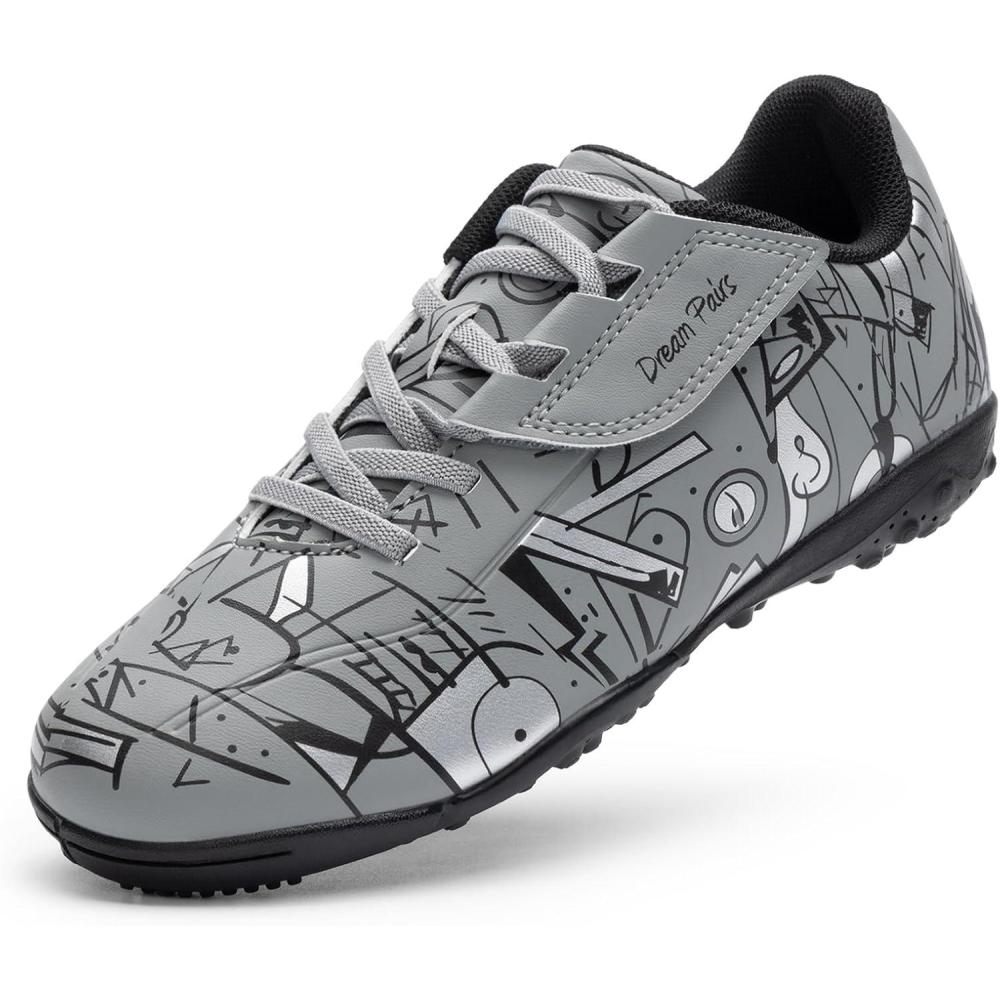 DREAM PAIRS Boys Girls Indoor Turf Soccer Cleats Lace Up Athletic Youth Futsal Football Casual Shoes for Little/Big Kid(Grey)
