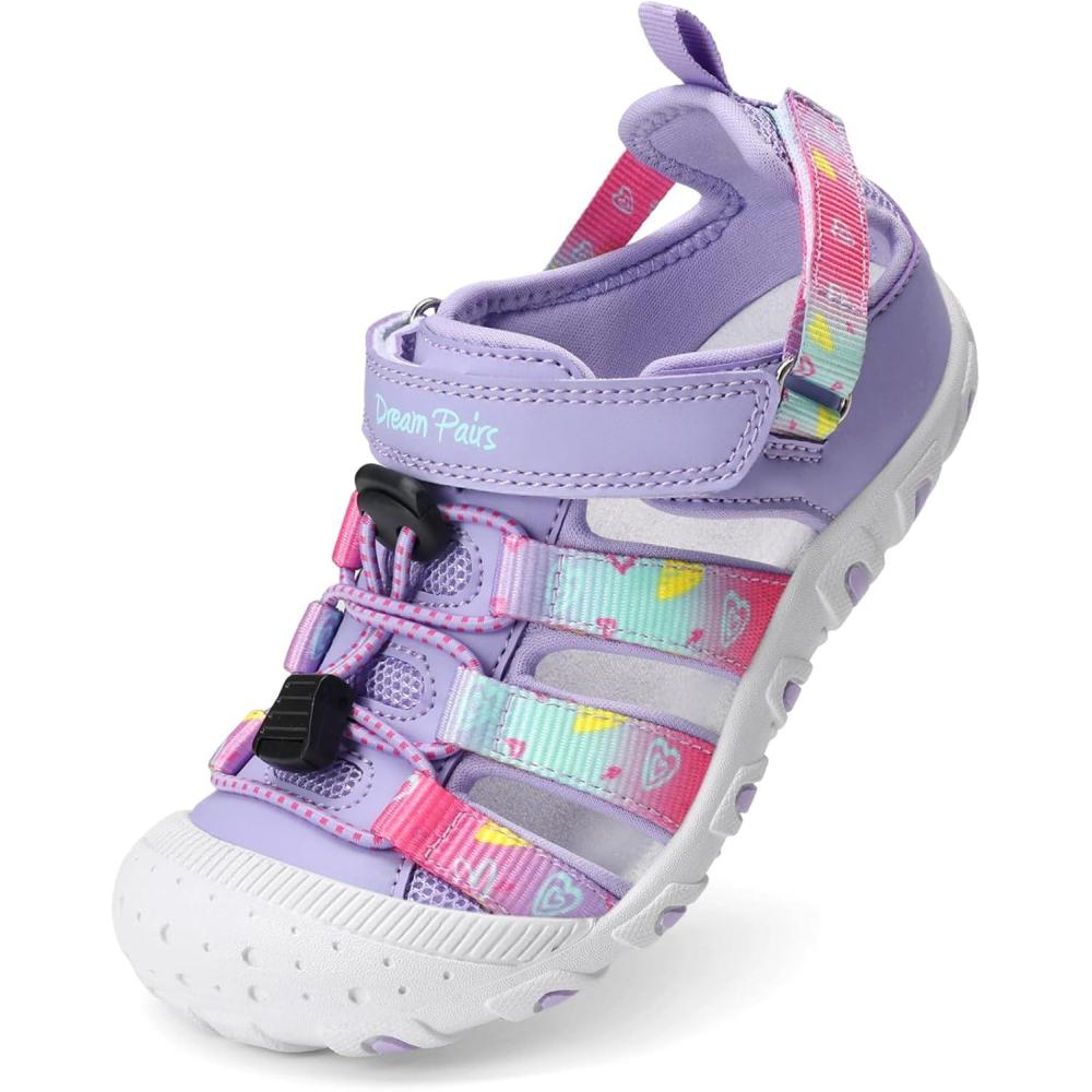 DREAM PAIRS Boys Girls Outdoor Athletic Sport Sandals Summer Hiking Beach Casual Closed Toe Rainbow Multicolor for Toddler/Little/Big Kids(Purple)