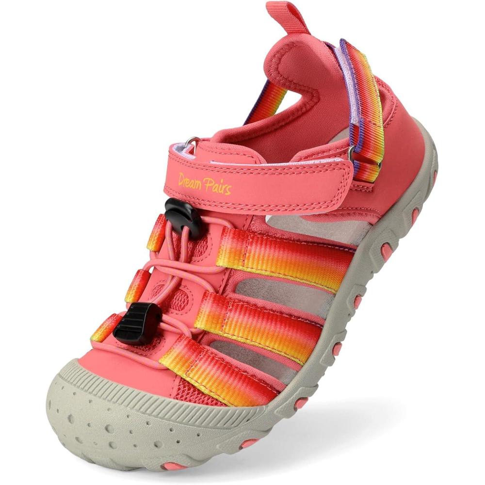 DREAM PAIRS Boys Girls Outdoor Athletic Sport Sandals Summer Hiking Beach Casual Closed Toe Rainbow Multicolor for Toddler/Little/Big Kids(Red/Rainbow)