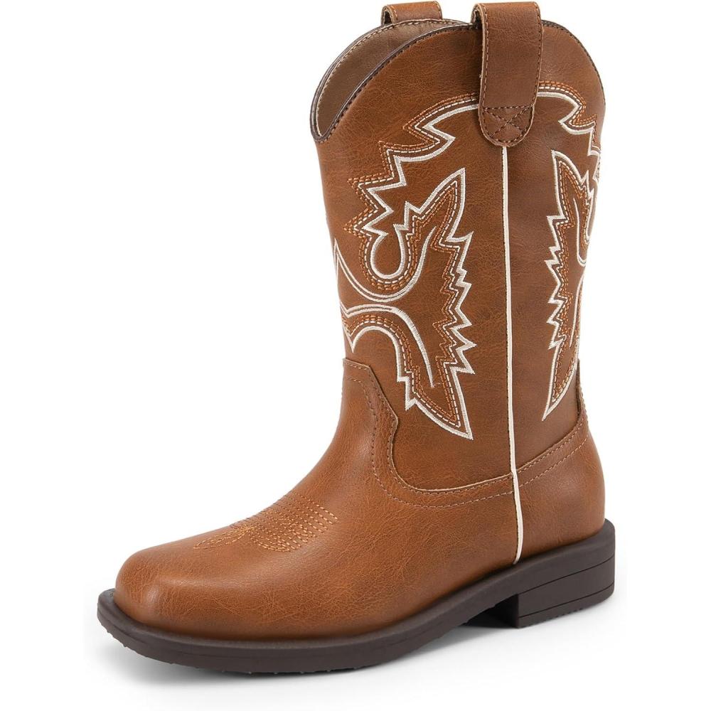 DREAM PAIRS Boys Girls Cowboy Boots Toddler Mid Calf Western Boots Square Toe Riding Boots for Kids(Brown)